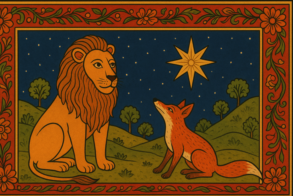 In a jungle in India lived two good friends – a young lion and a young fox. One day both these animals went out for a stroll in the jungle. The sky at that time was pleasant and clear with orange and purple hues. One could easily see a bright star twinkling in the sky, and it was none other than the star Venus or Shukra.